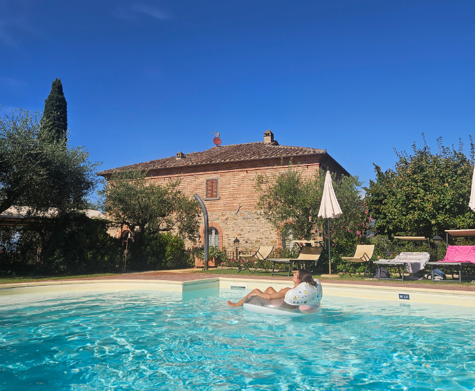 All'esterno ci sono zone relax: un grande gazebo coperto vicino alla cucina, con un ampio tavolo e sedie per mangiare all'aperto. Accanto alla piscina dell'agriturismo, il salotto sotto al gazebo in ferro battuto offre il massimo comfort e relax.
